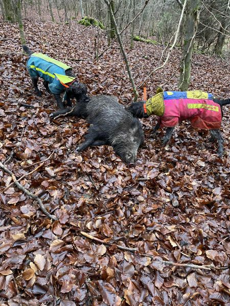 erfolgreich die Wildschweine in Bewegung und damit zur Strecke gebracht.